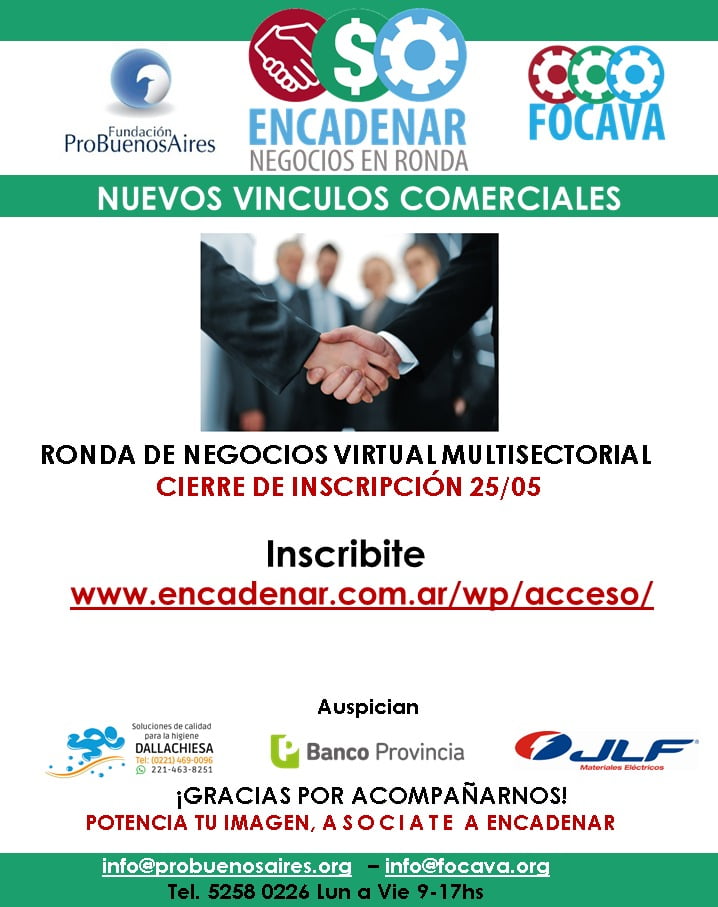 Con 96 empresas inscriptas cerro el 26 de Mayo a las 11 de la mañana Encadenar, negocios en ronda Multisectorial !